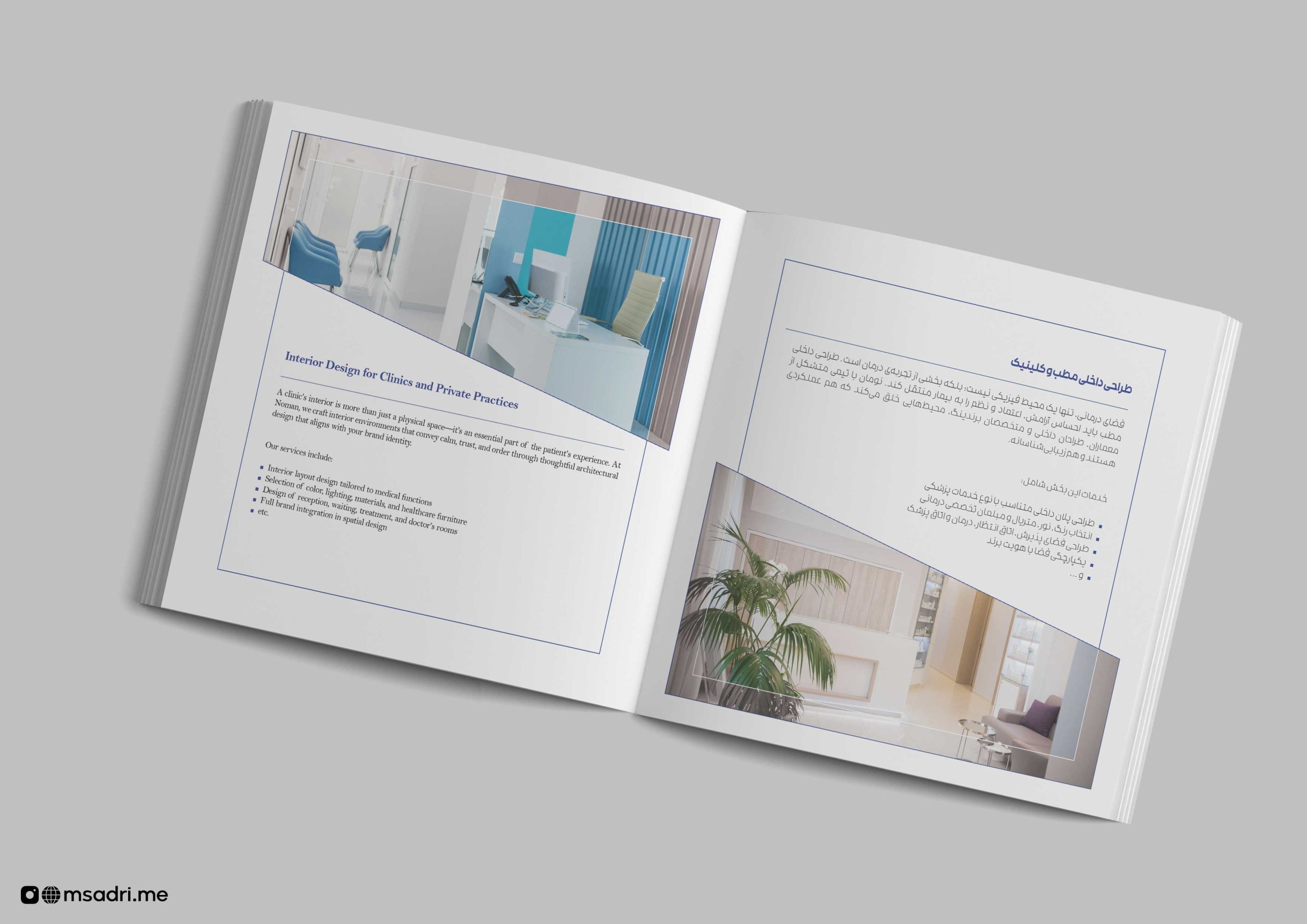 طراحی کاتالوگ خدمات تبلیغاتی در حوزه پزشکی، تولید محتوا و تصویر و طراحی جلد در سایز 20 در 20